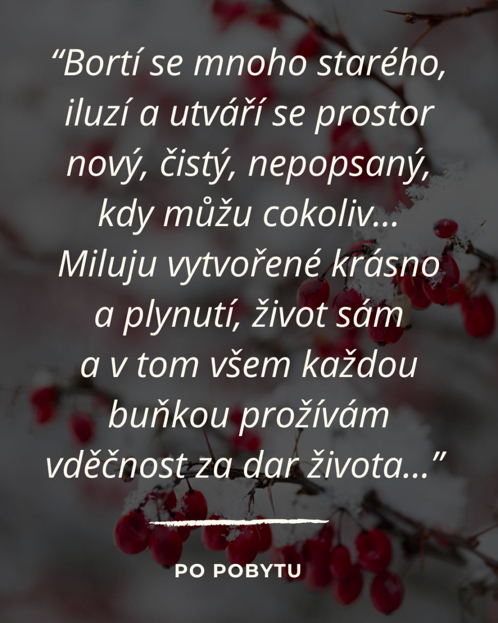 Pobyt jsem tvořila tak, aby ti umožnil vyskočit ze zajetých kolejí a znovu se podívat na svůj život jinýma očima – s něhou, se zpomalením.